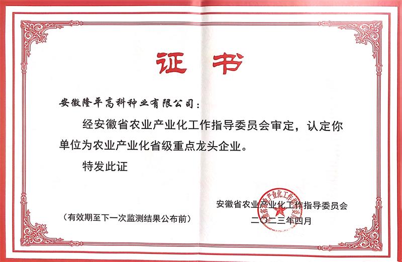 省農(nóng)業(yè)產(chǎn)業(yè)化龍頭企業(yè)證書...